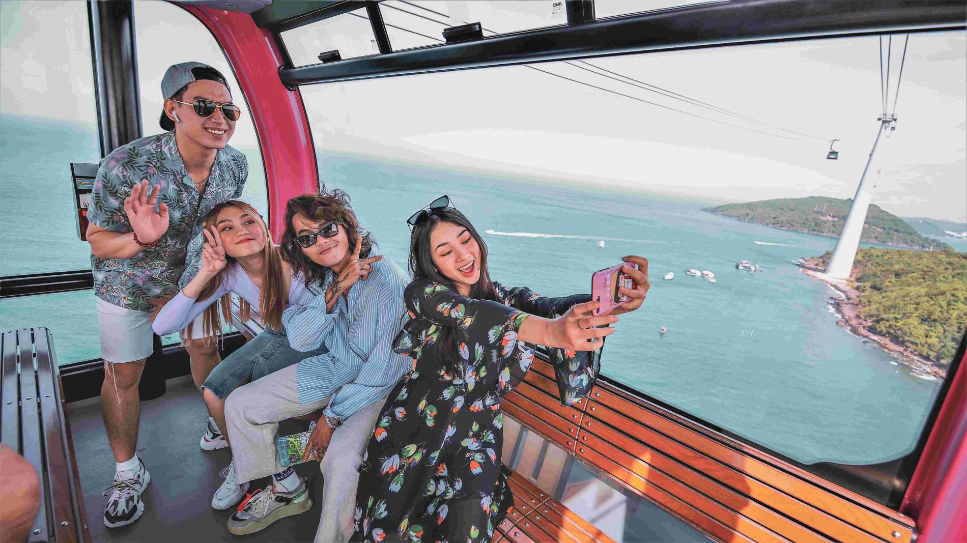 Phải một lần ngồi trong cabin của cáp treo Hòn Thơm để ngắm cảnh, du khách mới thực sự hiểu tại sao truyền thông quốc tế lại dùng từ “siêu thực” để miêu tả hành trình này. Chuyến du ngoạn mở ra một thước phim điện ảnh sống động: bắt đầu từ nhịp sống sôi động của làng chài với những con thuyền đủ sắc màu , cho đến sự hùng vĩ của toàn cảnh quần đảo An Thới xanh ngát với tầng tầng lớp lớp các màu xanh từ biển và đảo, đến cuối cùng là một tổ hợp vui chơi giải trí hiện đại bậc nhất châu Á hiện ra trước mắt: Sun World Hon Thom.
