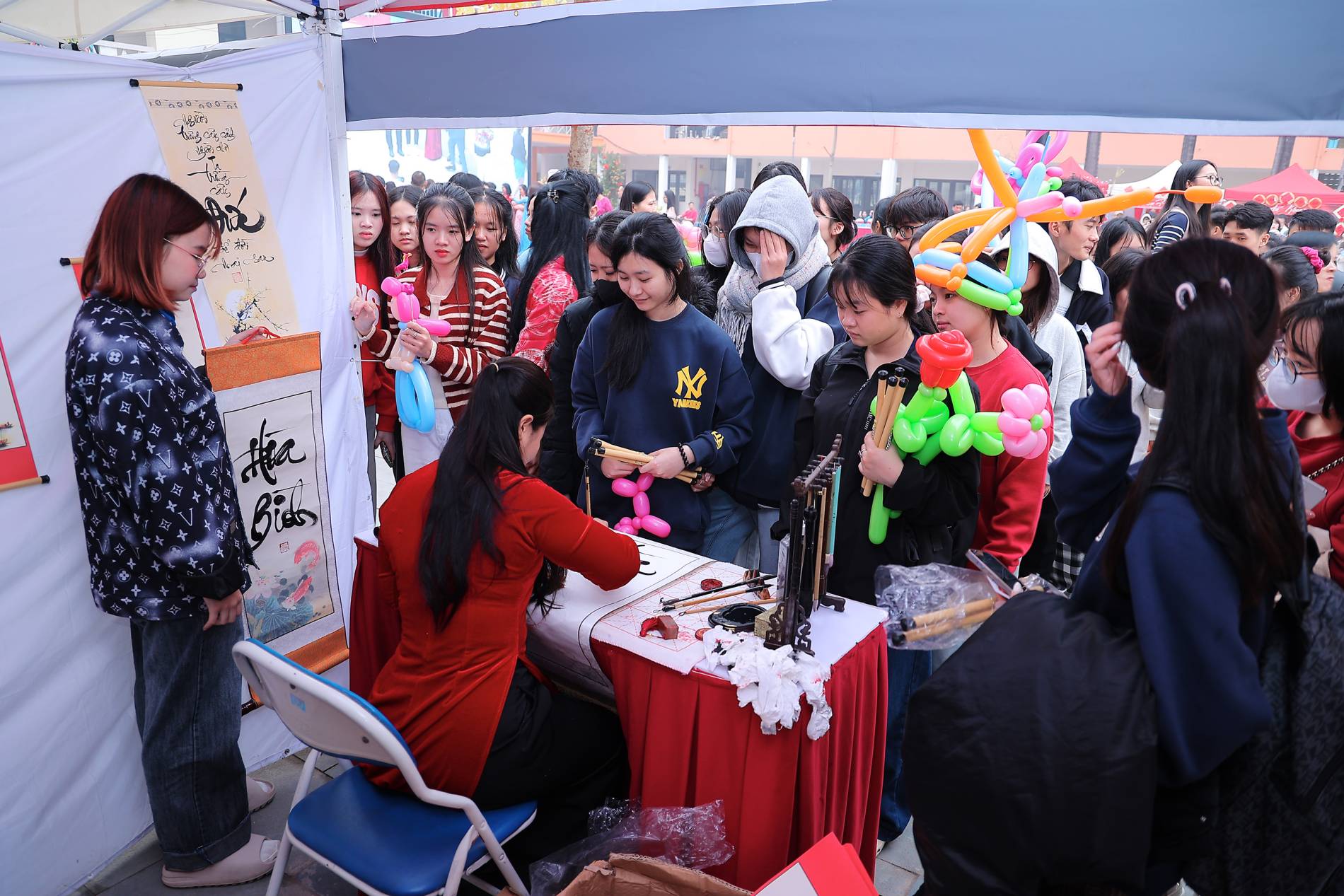 Trong khuôn khổ chương trình năm 2026, các đại biểu và sinh viên trực tiếp tham gia các hoạt động văn hóa dân gian như nặn tò he, xin chữ thư pháp, in tranh Đông Hồ, tham quan các không gian văn hóa; trải nghiệm khu ẩm thực Xuân và gói, nấu bánh chưng truyền thống; tham gia trò chơi dân gian, giao lưu văn nghệ và thưởng thức múa lân chào Xuân. Các hoạt động check-in, trao quà Tết và chia sẻ yêu thương tiếp tục lan tỏa tinh thần đoàn kết, nhân văn trong toàn thể cán bộ, giảng viên và sinh viên.
