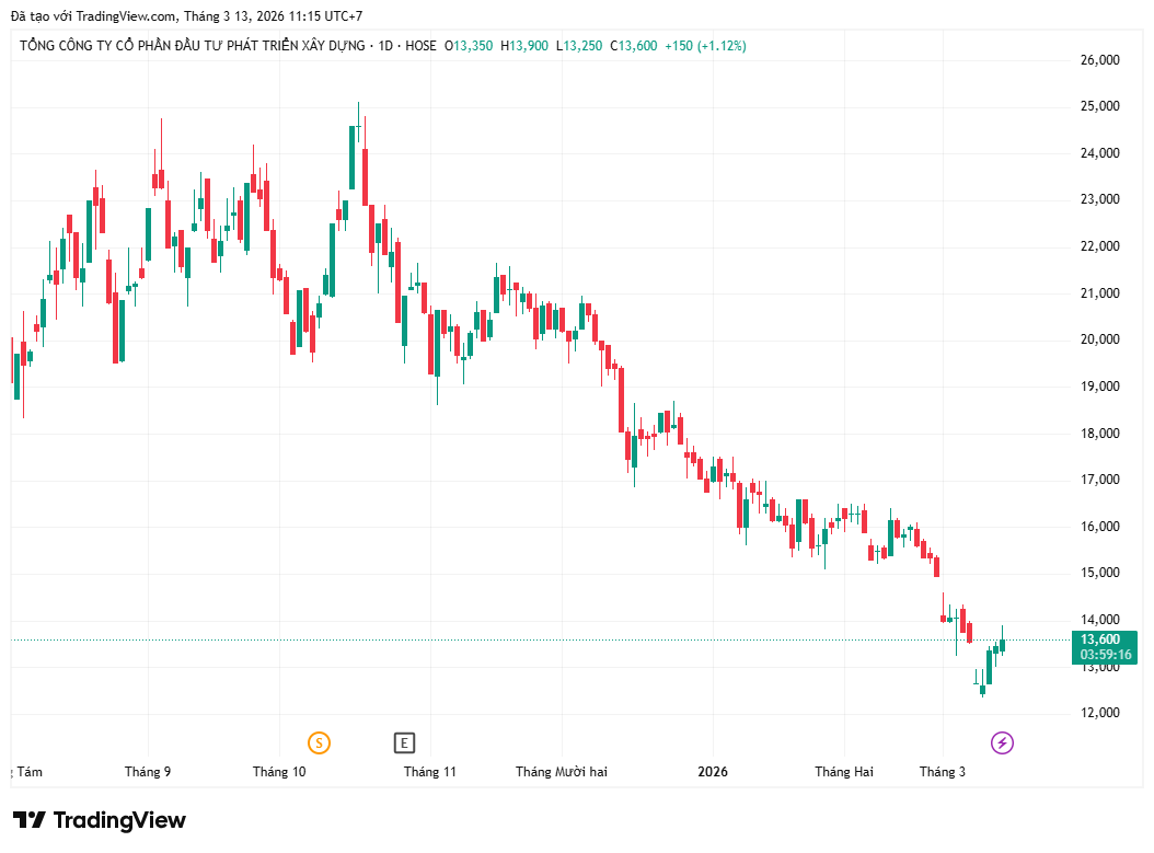 Trên thị trường chứng khoán, cổ phiếu DIG hiện đang giao dịch quanh mức 13.250 đồng/cp, giảm về vùng giá thấp nhất trong khoảng một năm trở lại đây. Diễn biến này cho thấy áp lực giảm giá vẫn đang hiện hữu đối với cổ phiếu của doanh nghiệp bất động sản này trong thời gian gần đây.