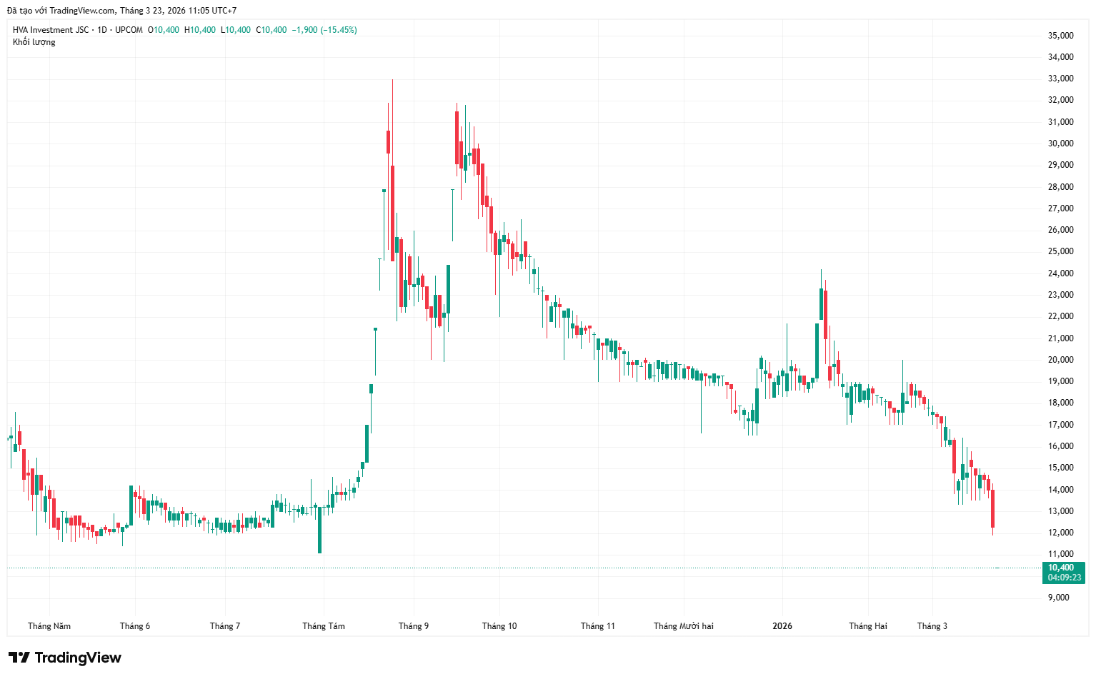 So với vùng đỉnh gần 30.000 đồng/cổ phiếu, thị giá HVA đã giảm gần 60%, kéo vốn hóa thị trường xuống dưới 168 tỷ đồng. Diễn biến này đồng nghĩa với việc hàng chục tỷ đồng giá trị vốn hóa đã bị “thổi bay” chỉ trong thời gian ngắn.