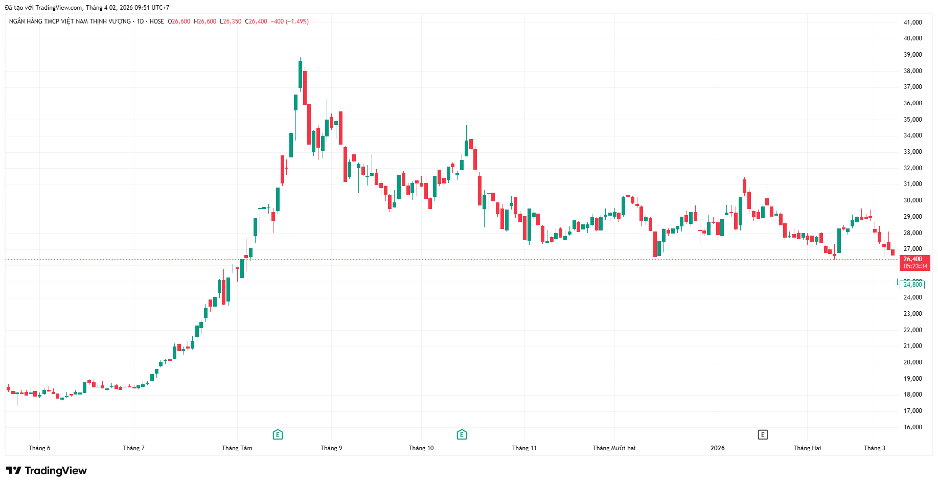 Diễn biến thị trường gần đây cũng phản ánh phần nào kỳ vọng này khi cổ phiếu VPB đã phục hồi về vùng 27.000 đồng/cổ phiếu trong phiên 01/04, với thanh khoản cải thiện rõ rệt. Tuy nhiên, mức giá hiện tại vẫn thấp hơn đáng kể so với vùng đỉnh 35.000-38.000 đồng/cổ phiếu, cho thấy dư địa tăng trưởng vẫn còn.