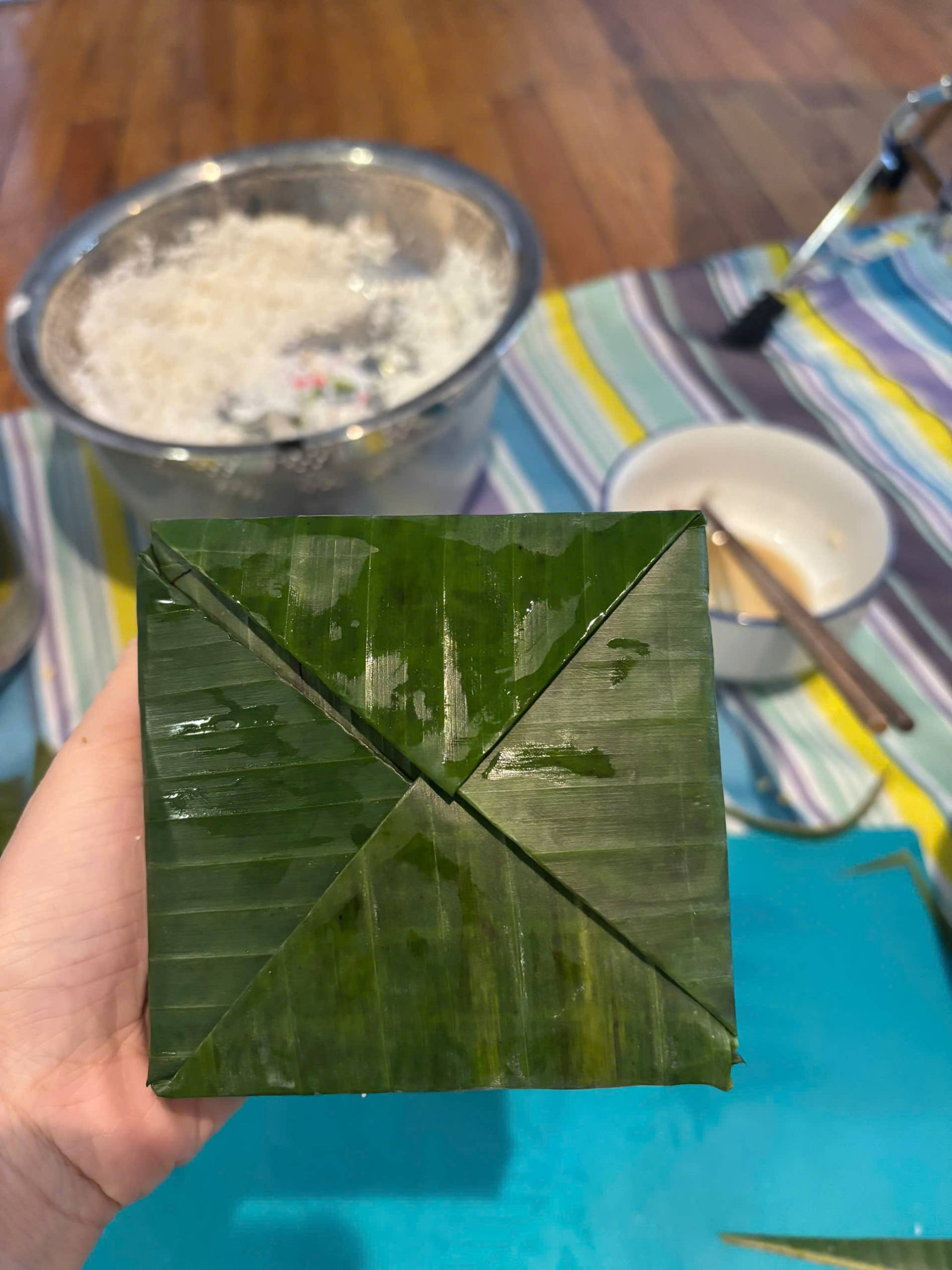 Trước những ngày Tết, chúng tôi sẽ tụ tập lại gói bánh chưng, giống như ở Việt Nam vậy, ở bên này trong các chợ Việt nguyên liệu đều dễ tìm, lá chuối, nếp, đỗ xanh, thịt lợn đều đủ cả.