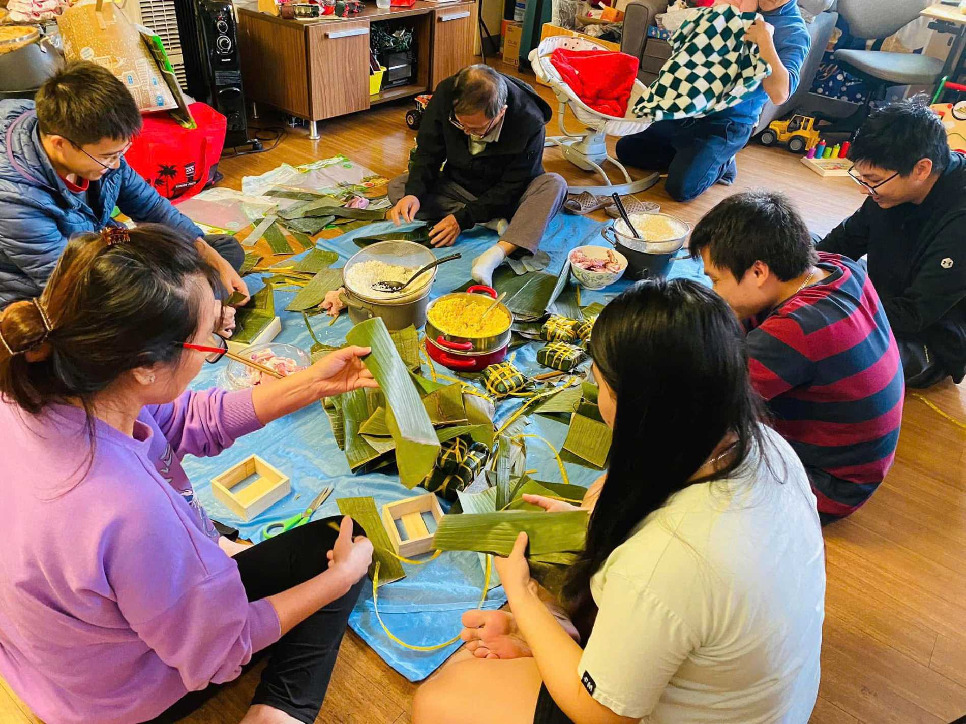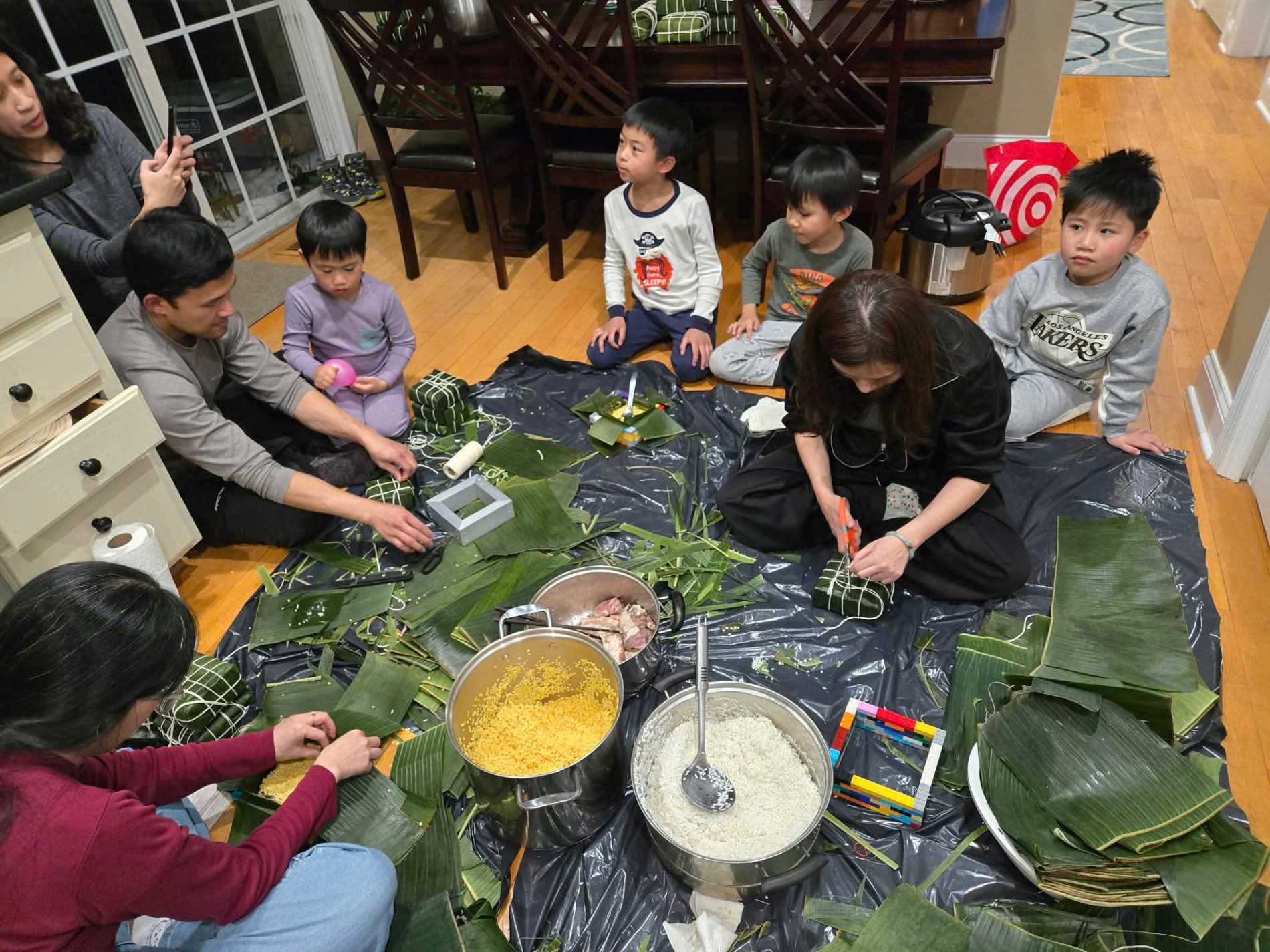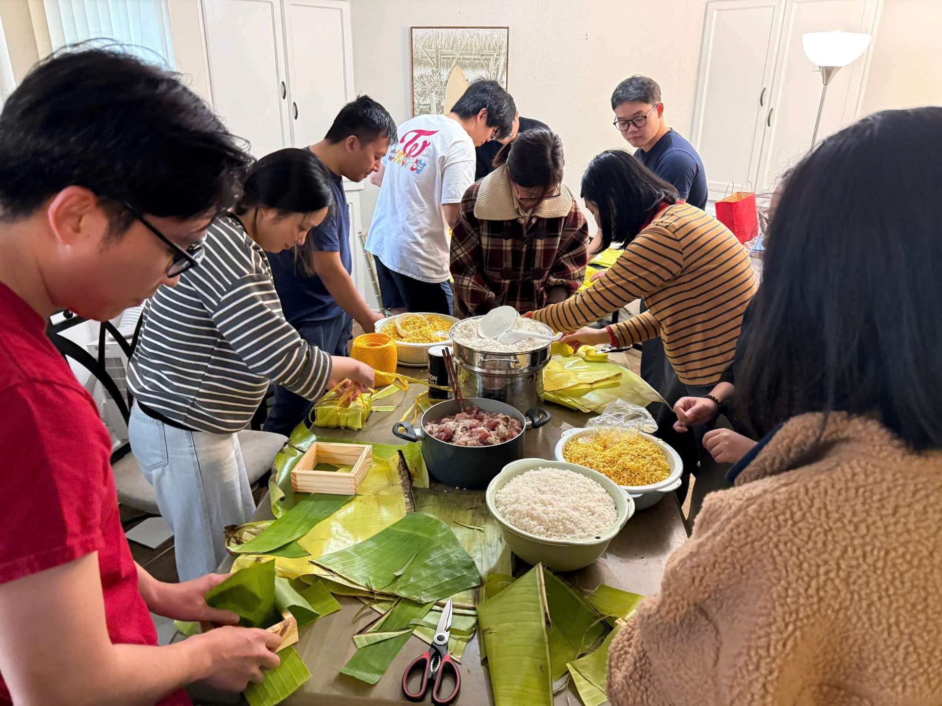 Những du học sinh đang theo học ở trường University of Southern California đang chuẩn bị những chiếc bánh chưng đón Tết.