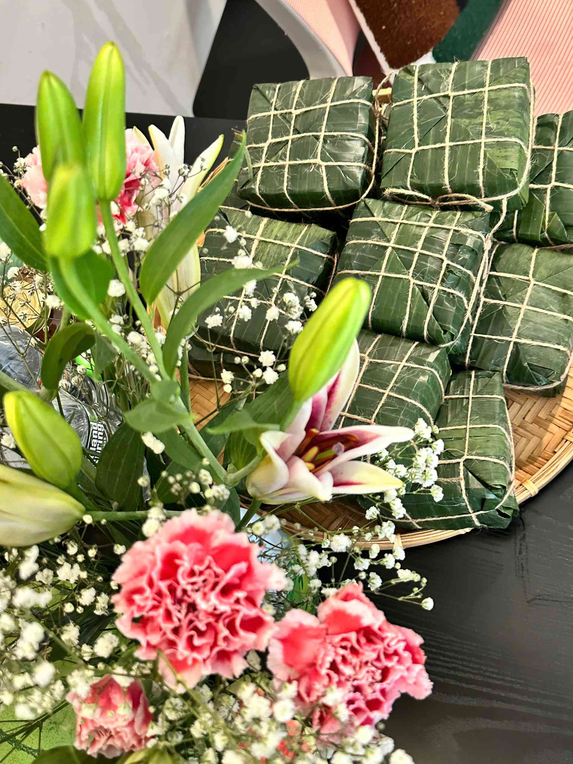 Dù xa quê nhưng chị Dung và bạn bè luôn giữ được thói quen tụ họp gói bánh chưng, trang trí bày biện trước ngày Tết để cùng nhau ôn lại kỉ niệm cho mình và để cho các con biết được Tết Việt.