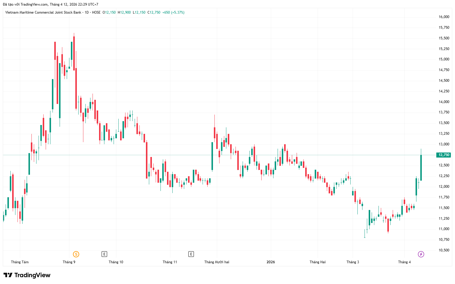 Ngân hàng TMCP Hàng Hải Việt Nam (mã chứng khoán: MSB) đang thu hút sự chú ý khi ghi nhận lực mua ròng đáng kể từ nhà đầu tư nước ngoài. Riêng phiên 10/4, cổ phiếu MSB áp sát mức giá trần 12.900 đồng/cp với thanh khoản gần 33 triệu đơn vị, thuộc nhóm cao trong khối ngân hàng quy mô vừa và nhỏ. Lũy kế từ đầu tháng 4 đến nay, khối ngoại đã mua ròng hơn 5 triệu cổ phiếu, trong bối cảnh thị trường chung diễn biến giằng co.