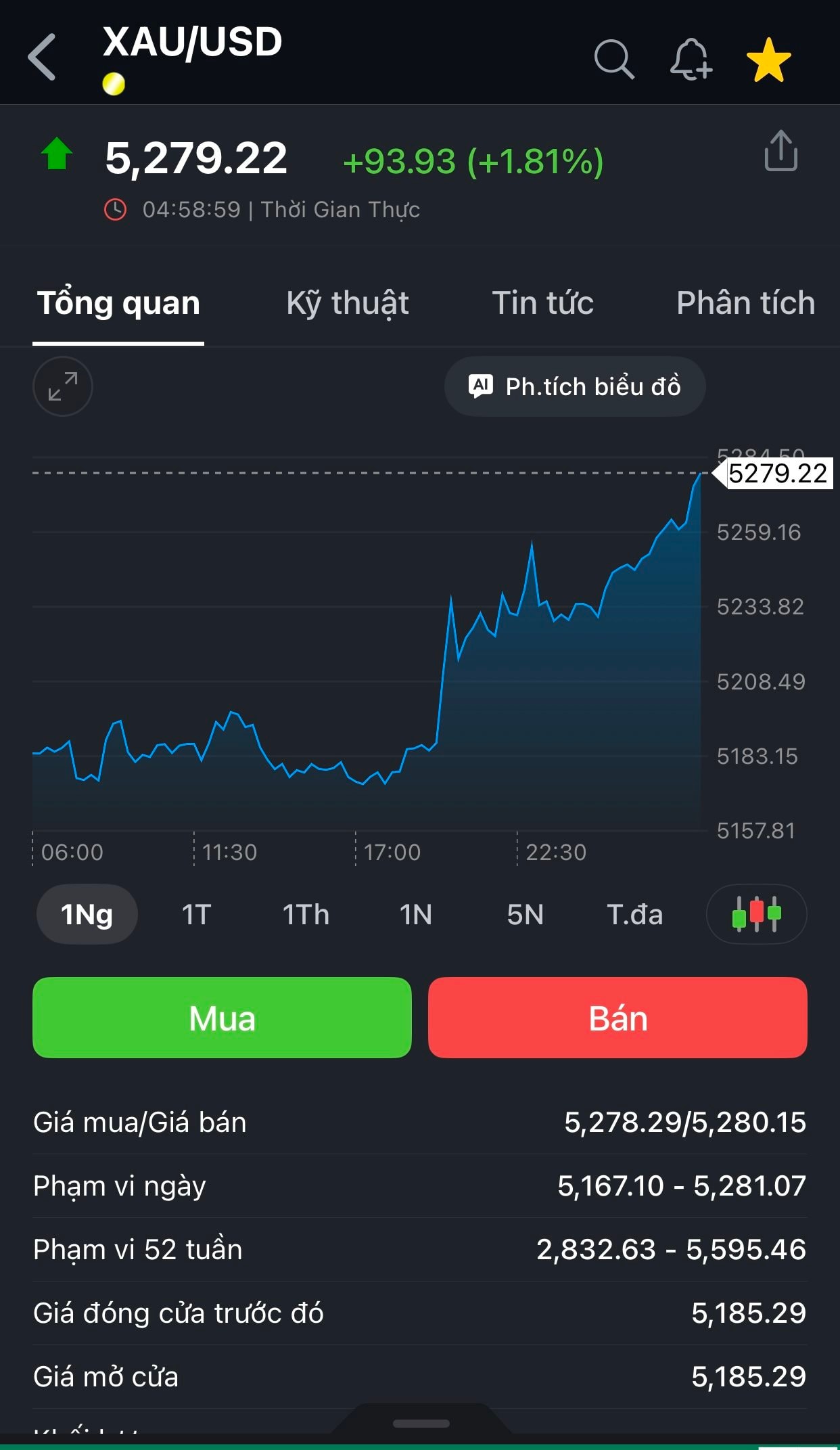 Theo ghi nhận tại Kitco, giá vàng giao ngay tăng gần 95 USD so với phiên trước, giao dịch quanh 5.280 USD/ounce. Có thời điểm, kim loại quý chạm 5.281 USD – mức cao nhất trong vòng một tháng. Tính riêng tháng 2, vàng đã tăng khoảng 7,6%.