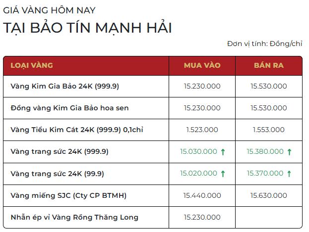 Trong tuần qua, giá vàng trong nước và thế giới đã có nhiều biến động. Ngày đầu tuần, giá vàng nhẫn ép vỉ và đồng vàng Kim Gia Bảo tại Bảo Tín Mạnh Hải dao động từ 150,5 - 153,5 triệu đồng/lượng. Tuy nhiên, đến cuối tuần, giá vàng đã tăng lên mức 152,3 - 155,3 triệu đồng/lượng, tăng 1,2 triệu đồng so với đầu tuần. Giá vàng Tiểu Kim Cát cũng được niêm yết ở mức tương tự.