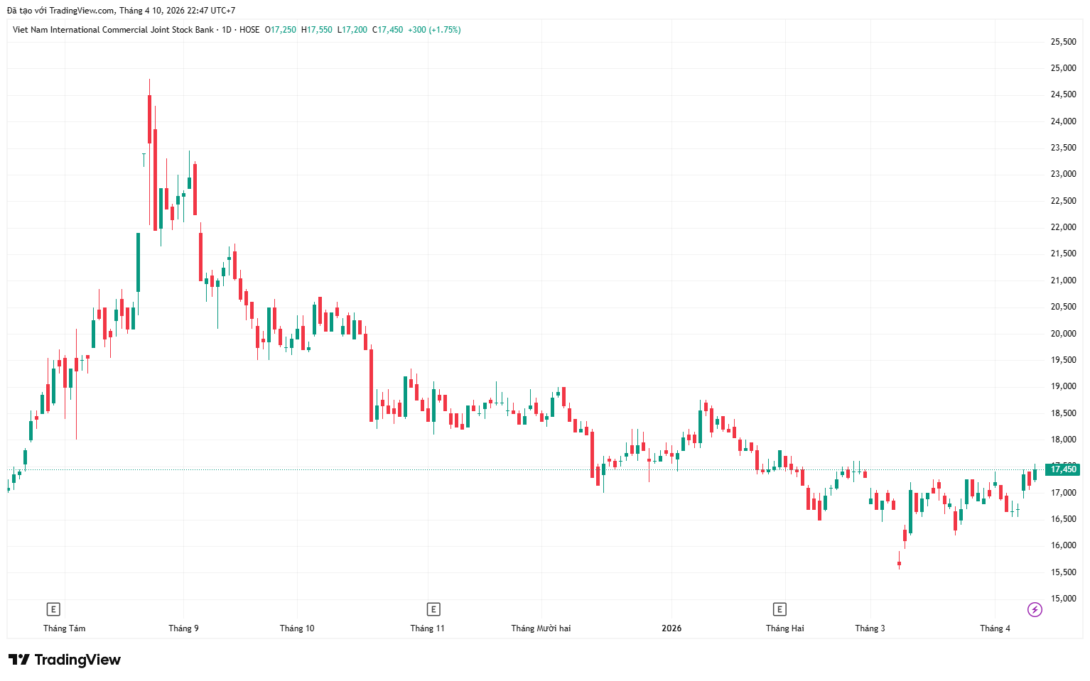 Trên thị trường chứng khoán, kết phiên ngày 10/04, cổ phiếu VIB đóng cửa tại 17.450 đồng/cổ phiếu, tăng 1,75% so với phiên liền trước, với thanh khoản cải thiện đáng kể. Theo mức giá này, ước tính bà Đặng Thị Thu Hà sẽ chi khoảng 104,7 tỷ đồng để mua cổ phiếu, trong khi bà Đặng Minh Trang có thể thu về gần 97,7 tỷ đồng từ việc thoái vốn.