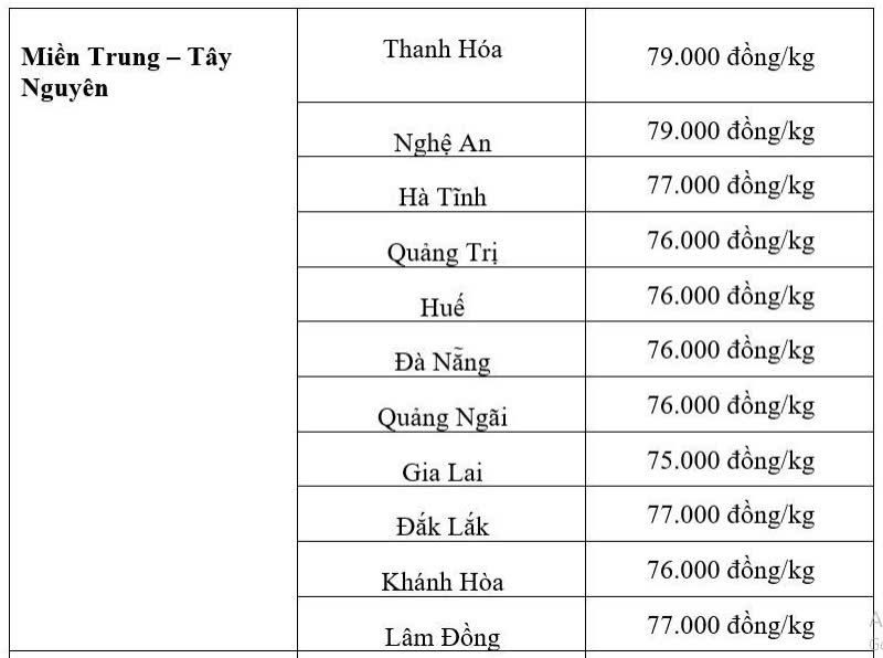 Cụ thể, giá heo tại Thanh Hoá và Nghệ An cùng tăng 1.000 đồng/kg, hiện đạt 79.000 đồng/kg, cao nhất khu vực. Huế và Đắk Lắk cùng tăng 1.000 đồng/kg, lần lượt lên mức 76.000 đồng/kg và 77.000 đồng/kg. Đáng chú ý, Lâm Đồng tăng mạnh đến 2.000 đồng/kg, hiện thu mua tại 77.000 đồng/kg.