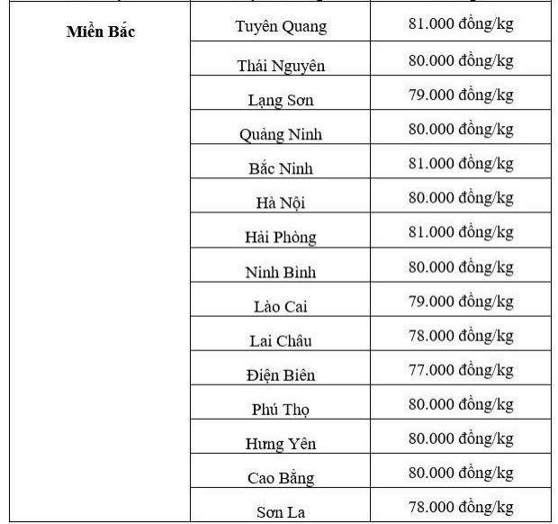 Các địa phương Cao Bằng, Thái Nguyên, Quảng Ninh, Ninh Bình và Phú Thọ đồng loạt tăng 1.000 đồng/kg, cùng giao dịch ở mức 80.000 đồng/kg. Giá heo tại Sơn La cũng tăng 1.000 đồng/kg, lên 78.000 đồng/kg.