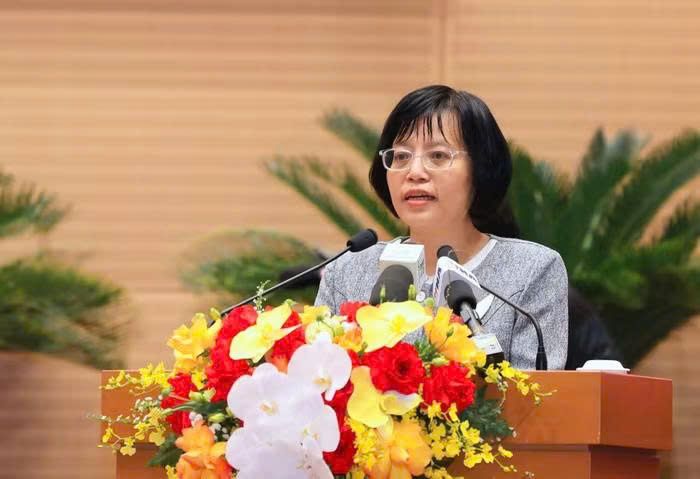 Trưởng ban Kinh tế - Ngân sách HĐND thành phố Hồ Vân Nga trình bày báo cáo thẩm tra Tờ trình tại kỳ họp. Ảnh: Viết Thành.
