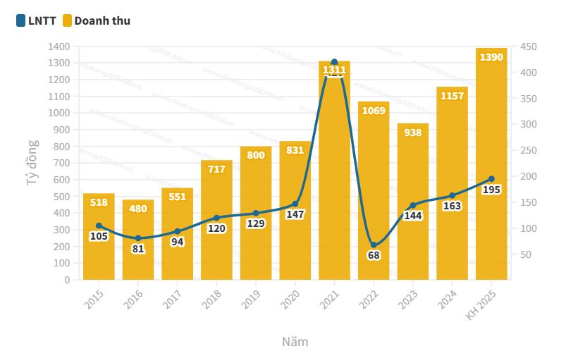 Lũy kế cả năm 2025, Cảng Đồng Nai ghi nhận doanh thu 1.575 tỷ đồng, tăng 17,8%; lợi nhuận trước thuế đạt 545,6 tỷ đồng, lợi nhuận sau thuế đạt 436,5 tỷ đồng, tăng 25,7%. Đây là mức cao nhất kể từ khi thành lập cùng thu nhập EPS năm 2025 đạt 7.350 đồng/cổ phiếu.