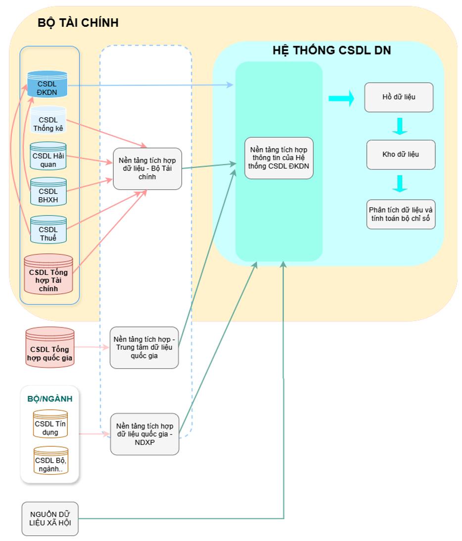 Theo Quyết định 100, Cơ sở dữ liệu doanh nghiệp là hệ thống dữ liệu tập trung, thống nhất, được tích hợp từ 5 nguồn dữ liệu chính, gồm: