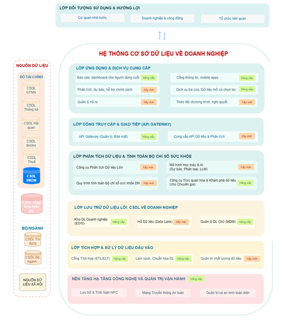 Giai đoạn 1 (năm 2025): Xây dựng cơ sở dữ liệu doanh nghiệp cơ bản; tích hợp 4 nguồn dữ liệu gồm: đăng ký doanh nghiệp, thuế, bảo hiểm xã hội và xuất nhập khẩu; đồng thời ban hành và vận hành Bộ chỉ số đo lường sức khỏe doanh nghiệp phiên bản cơ bản.