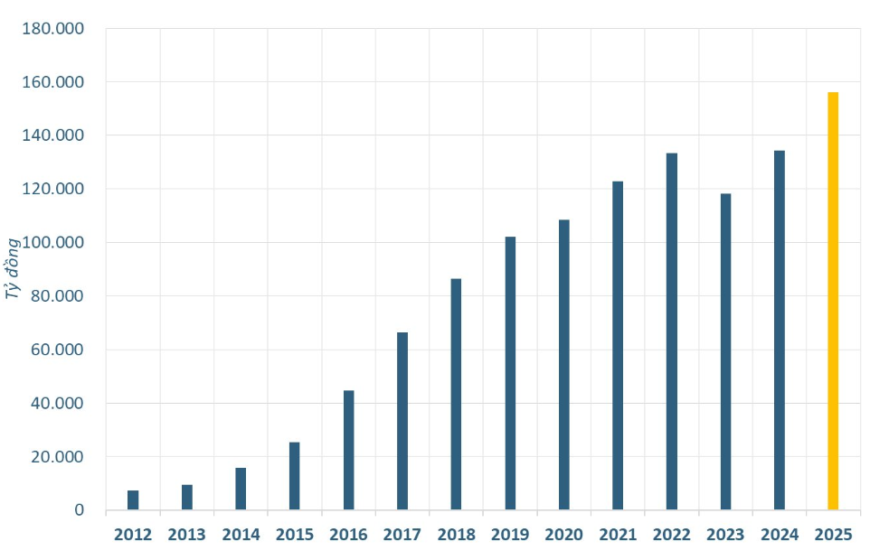 Bình quân trong năm 2025, mỗi ngày MWG mang về gần 428 tỷ đồng doanh thu. Riêng tháng 12/2025, doanh thu đạt 13.864 tỷ đồng, tăng khoảng 16% so với cùng kỳ năm 2024, phản ánh sự cải thiện rõ nét của sức mua trong giai đoạn cuối năm.