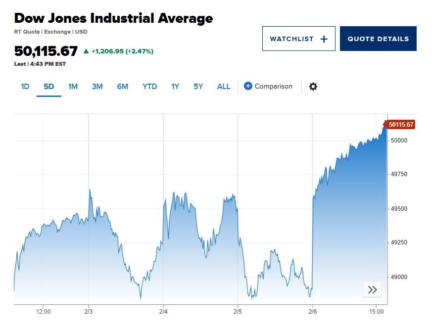 Diễn biến phiên thứ Sáu cho thấy, nhận định này đang được phản ánh rõ trên thị trường. Nhóm cổ phiếu công nghiệp và tài chính ghi nhận lực mua mạnh, với Caterpillar tăng khoảng 7% và Goldman Sachs tăng 4%, trở thành các mã đóng góp tích cực cho chỉ số Dow Jones.