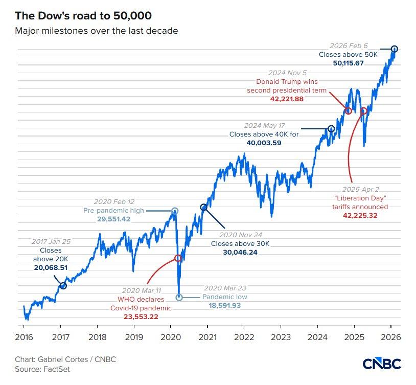 Những cột mốc đối với chỉ số Dow Jones trong 10 năm qua.