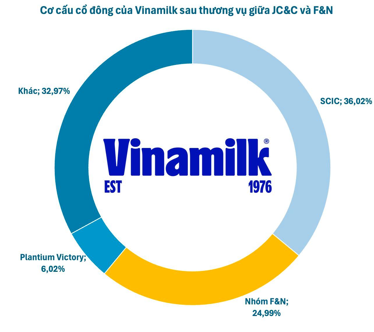 Theo thông báo vào ngày 16/12, F&N đã đạt được thỏa thuận chuyển nhượng số cổ phần này từ Platinum Victory Pte. Ltd, một pháp nhân thuộc Jardine Cycle & Carriage (JC&C), với mức giá thực hiện là 62.555 đồng/cổ phiếu. Sau giao dịch này, tỷ lệ sở hữu của nhóm F&N tại Vinamilk đã nâng lên 24,99%, tiếp tục duy trì vị thế là cổ đông nước ngoài lớn nhất và là cổ đông lớn thứ hai tại Vinamilk, sau Tổng công ty Đầu tư và Kinh doanh Vốn Nhà nước (SCIC).