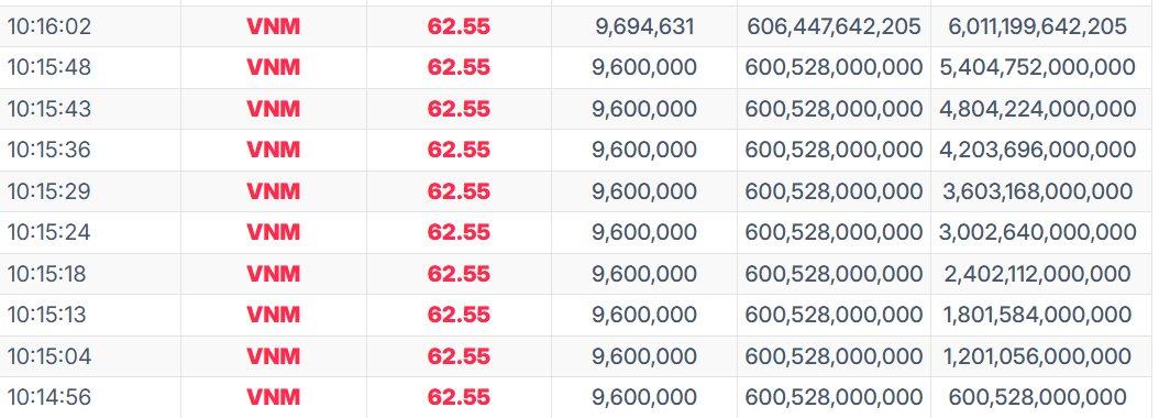 Trong khoảng thời gian từ 10h14 đến 10h16, tổng cộng 96 triệu cổ phiếu đã được sang tay, với giá trị đạt 6.011 tỷ đồng, tương ứng với mức giá bình quân 62.555 đồng/cổ phiếu. Các thông số về khối lượng, mức giá và tổng giá trị của giao dịch này hoàn toàn trùng khớp với thông tin mà F&N Dairy Investments, thành viên của tập đoàn F&N, đã công bố trên Sở Giao dịch Chứng khoán Singapore (SGX).