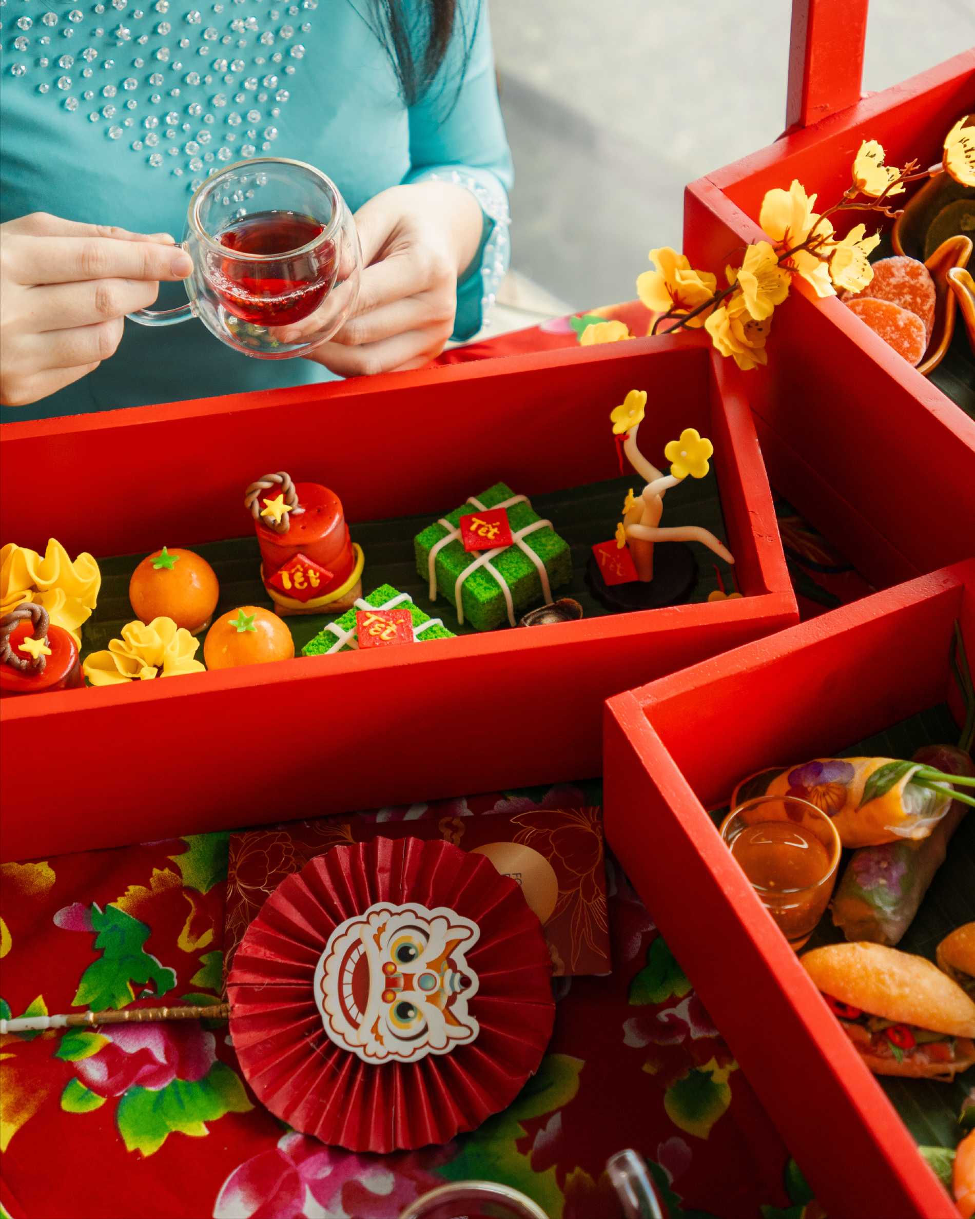 Tinh thần Tết tiếp tục được lan tỏa qua các trải nghiệm ẩm thực được tuyển chọn kỹ lưỡng. Từ set trà chiều Hoàng Gia lấy cảm hứng từ bánh trái truyền thống Việt Nam, đến set menu đồ ăn Tết đậm đà hương vị bản địa - mỗi trải nghiệm đều được thiết kế để tôn vinh những khoảnh khắc đoàn viên, trò chuyện và sẻ chia trong những ngày đầu năm.