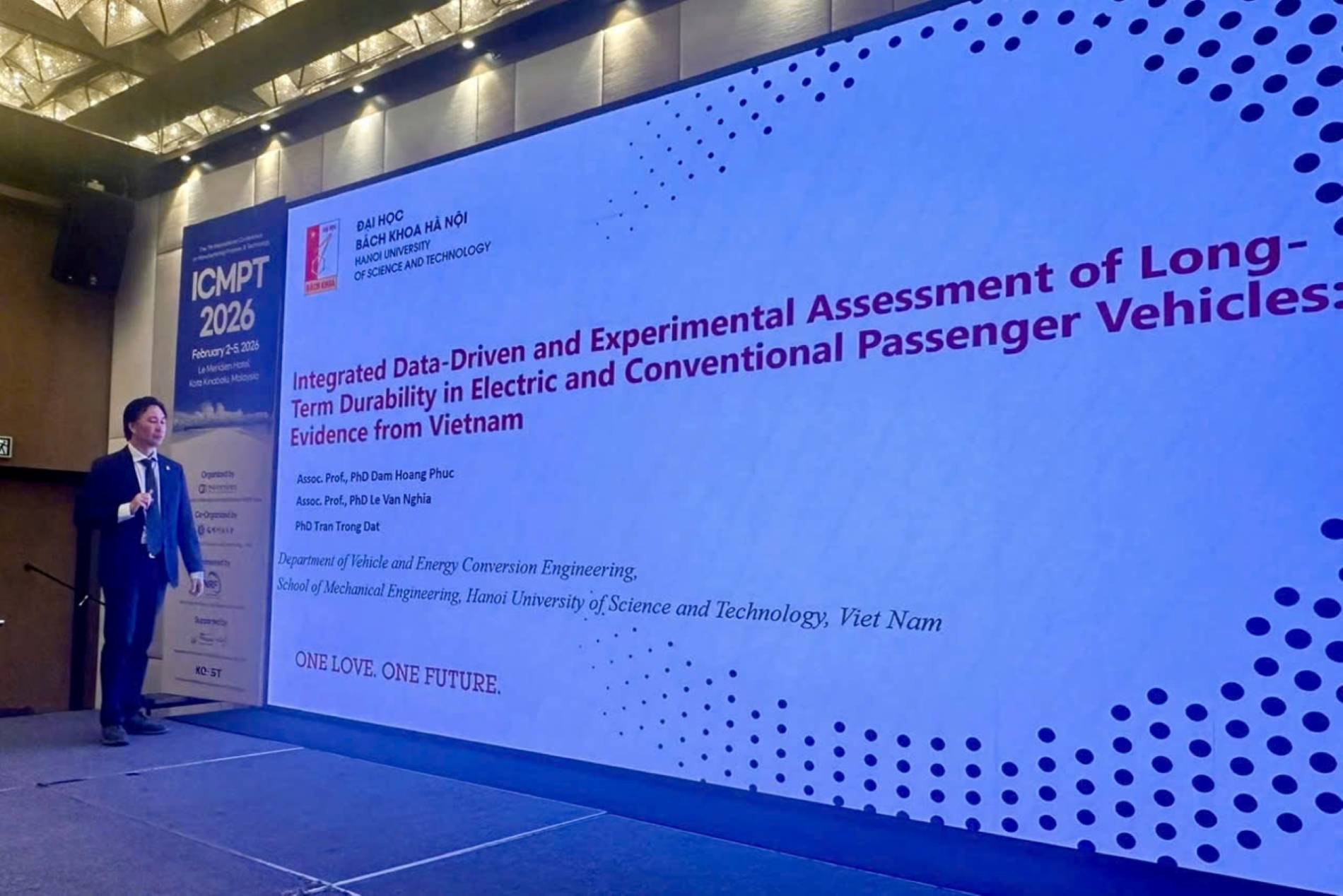 Tại Hội nghị quốc tế về Công nghệ Chế tạo & Sản xuất (ICMPT 2026) diễn ra ở Malaysia (2-5/2), một báo cáo đến từ Việt Nam đã thu hút sự quan tâm đặc biệt của giới học thuật quốc tế. Nhóm nghiên cứu BK AUTO thuộc Đại học Bách khoa Hà Nội đã công bố nghiên cứu so sánh độ bền dài hạn giữa ô tô điện và ô tô động cơ đốt trong.