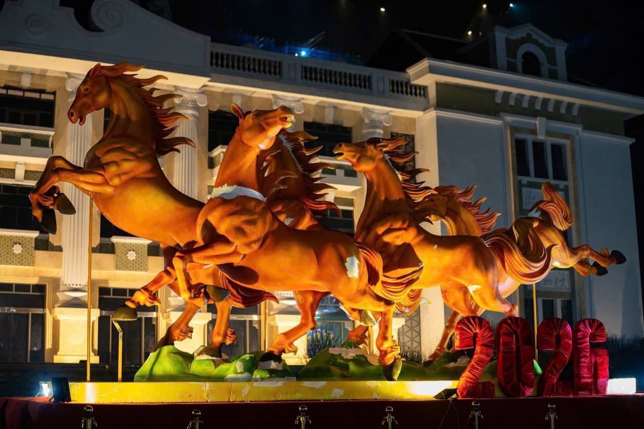 Hình tượng Xích mã - ngựa đỏ của năm Bính Ngọ tại Đắk Lắk tượng trưng cho khí thế rực rỡ, đổi mới và bứt phá, lan tỏa năng lượng tích cực trong năm mới 2026.