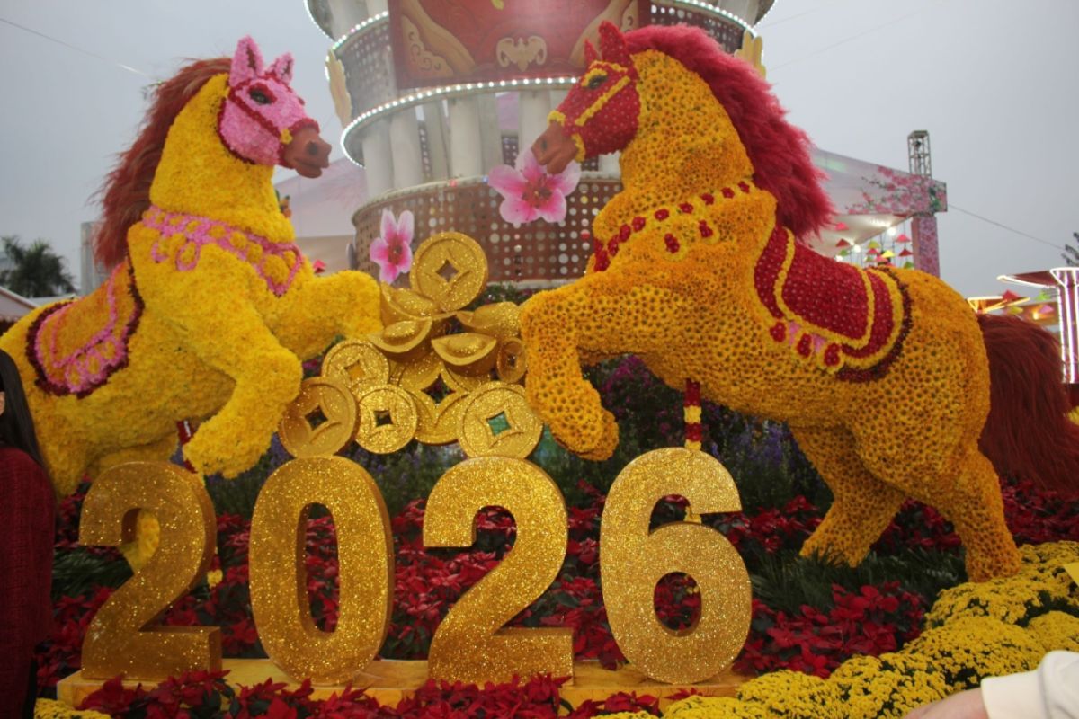 Linh vật ngựa ở chợ hoa Tết nổi tiếng của Phú Thọ