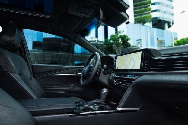 Bên trong Camry là cảm giác “sang trọng trong từng chi tiết, tiện nghi trên từng chặng đường”. Ghế lái và ghế phụ chỉnh điện 10 hướng, tích hợp làm mát, giúp người lái giữ sự thoải mái trong lịch trình dày đặc. Màn hình kỹ thuật số 12,3 inch kết hợp hiển thị trên kính lái HUD giúp quan sát thông tin thuận tiện mà vẫn đủ tập trung.