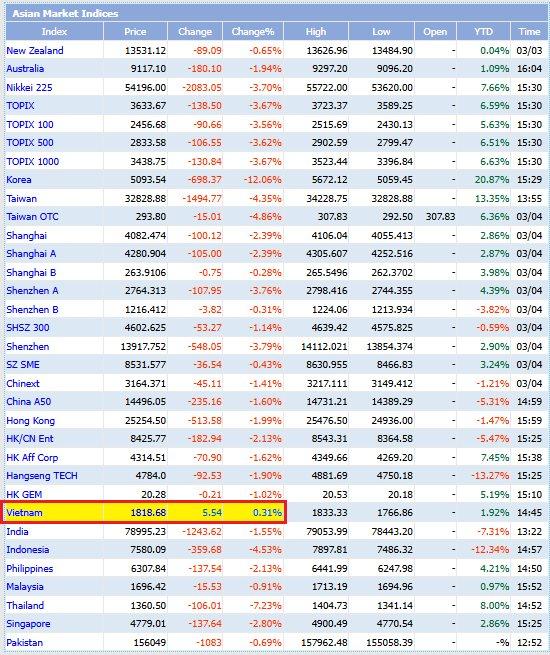 Đáng chú ý, thị trường trong nước đi ngược xu hướng nhiều sàn châu Á trong cùng thời điểm. Một số chỉ số khu vực chìm trong sắc đỏ do lo ngại địa chính trị leo thang, thậm chí có thị trường kích hoạt cơ chế ngắt mạch.